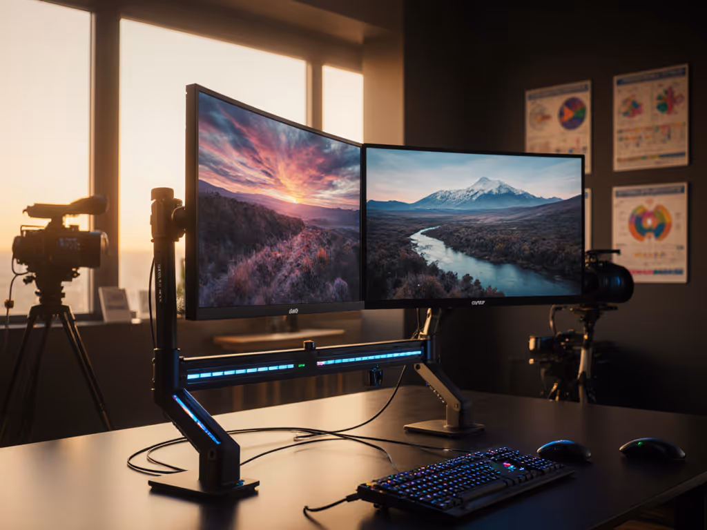 When professionals ask whether they need separate photo vs video editing monitor setup configurations, the answer isn't about the display alone. It is about the entire ecosystem of creative workflow accessories that transform hardware into a precision tool. Performance starts with fit. The right mount, cable, and power remove bottlenecks you can't software your way around. I learned this watching a premium arm buckle under a 49-inch curved panel, because ignoring weight distribution and VESA offset cost me weeks of re-rigging. Spec the desk, then the gear (never the other way).